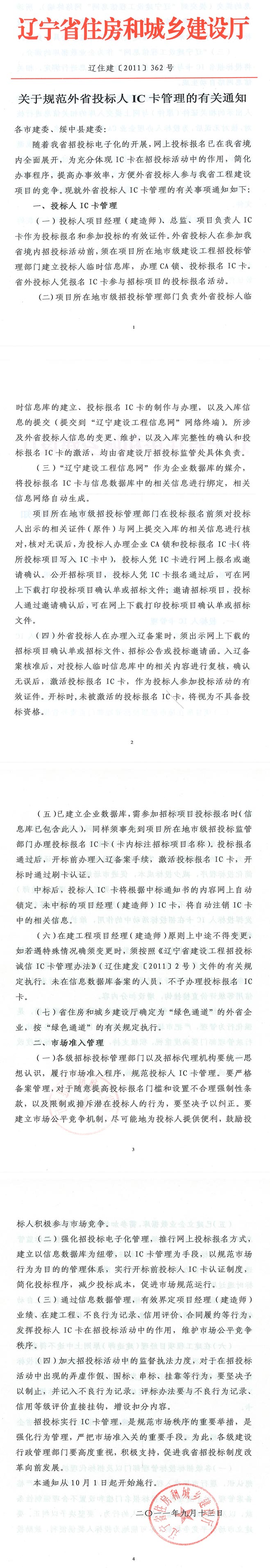 【概要描述】关于规范外省投标人IC卡管理的有关通知