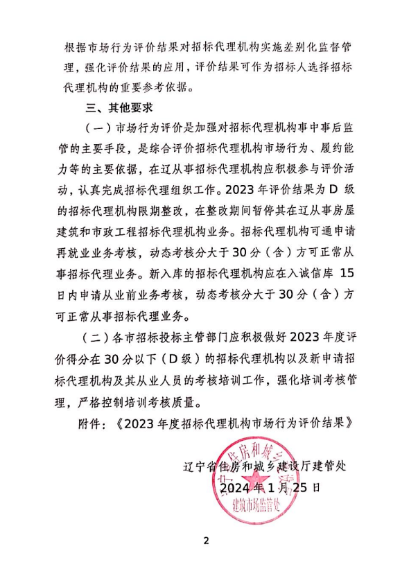 房屋建筑和市政工程招标代理机构市场行为评价是辽宁省住建厅为加强和完善辽宁地区招标代理机构市场行为监管,规范招标代理机构和从业人员执业行为,落实招标代理机构和从业人员主体责任,提高招标代理机构综合素质和业务水平而开展的年度系统工作,对提高招标代理机构综合素质和业务水平具有十分积极的作用。时搏网页版登录入口始终高度重视业务的合规化管理与市场各方的评价反馈,通过不断完善内部管理制度、建设专业人才队伍、加强风险防控能力、规范采购业务行为、提升全过程价值服务水平等一系列举措,构建企业核心竞争力,引领行业规范发展。