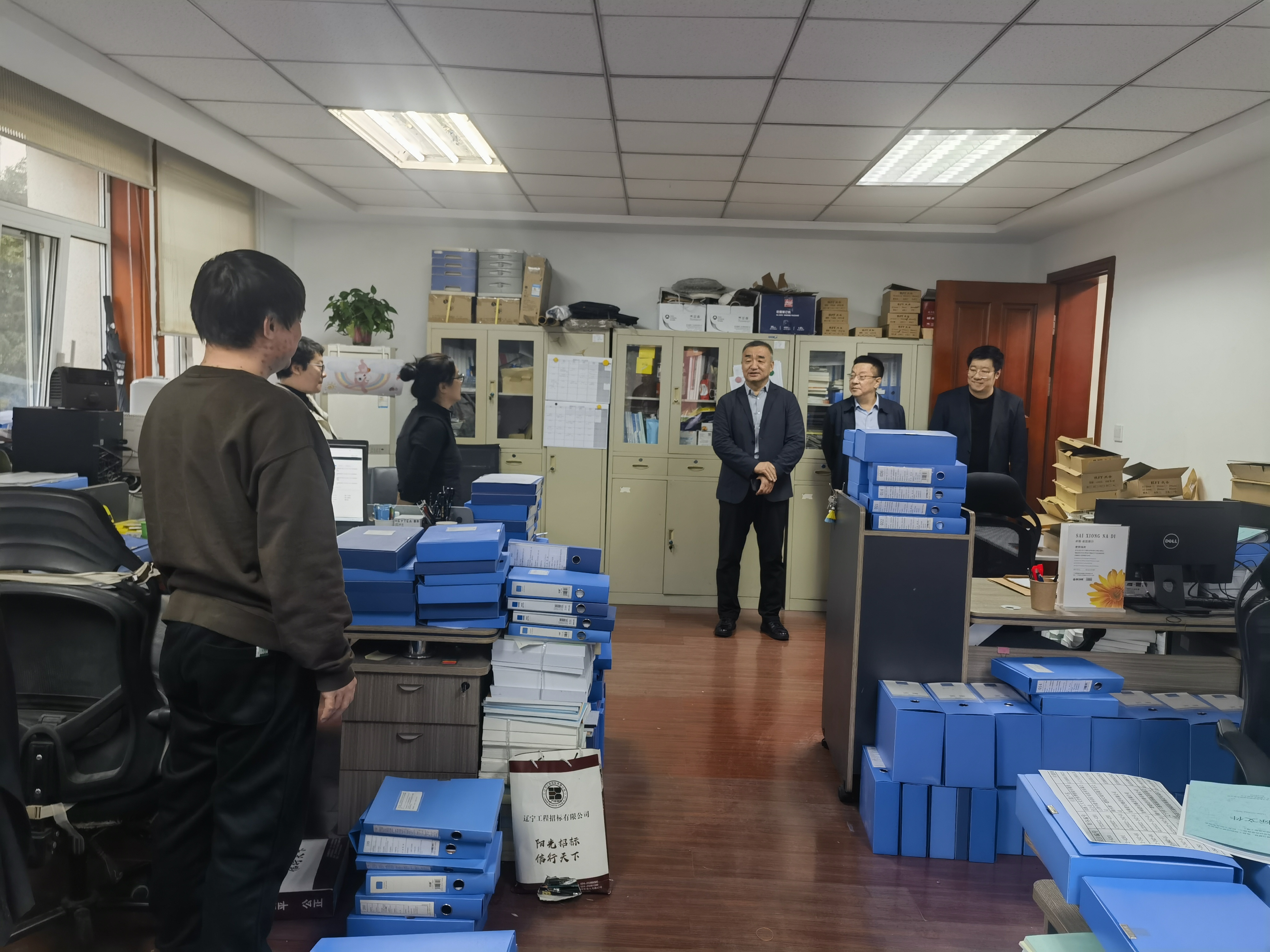 此次检查主要通过现场检查的方式,先后深入各部门办公区域、开标区域、食堂、档案室、水泵房、值班室和库房等地进行实地检查。重点检查岗位安全工作职责和场所的消防安全管理,食堂的燃气安全、用水、用电管理,安全隐患排查和各区域环境卫生等情况,特别对燃气报警设施、水泵、配电箱、消防器材以及工作台账进行仔细检查。